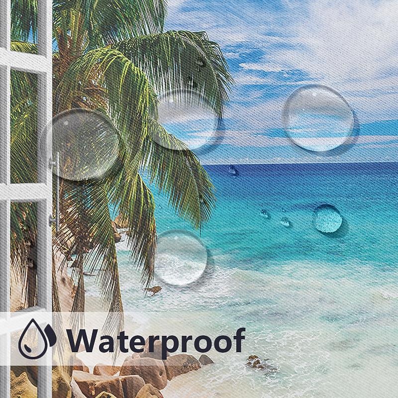 More information about Outdoor Curtains Waterproof Windproof Weatherproof Curtain for Patio, Cabana, Porch, Pergola and Gazebo, Grommet Top Drape, 2 Panels Beach Palm