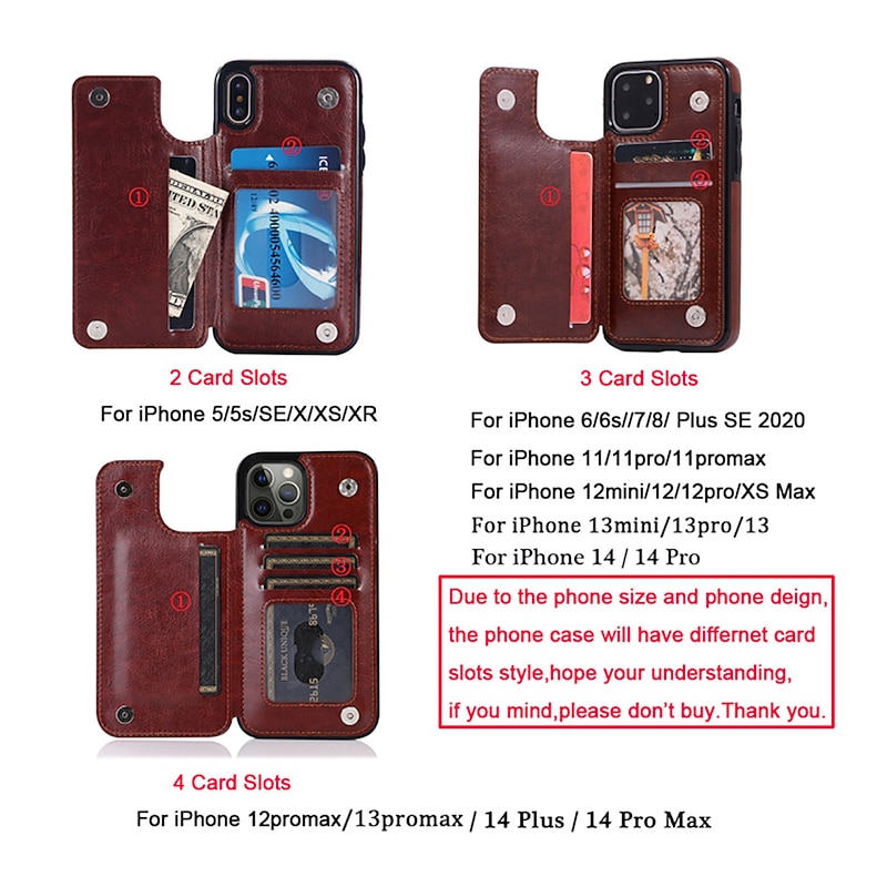 Highlights 1. A one-of-a-kind wallet case design that features a 2 in 1 combination. 2. Made from high-quality hybrid leather and soft TPU bumper for ultimate durability. 3. Includes convenient card slots for storing your credit, debit, and ID cards 4. The four magnetic buttons provide enhanced security and safety for your important cards. 5. Features anti-slip, anti-scratch, impact-resistant, and shockproof properties to protect your phone from damage. 6. This package includes one magnetic leather wallet case card slot shockproof flip cover, ideal for those who want to keep their phone and important cards all in one convenient place.