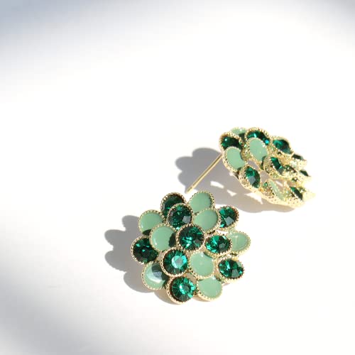 • Charming eye catching statement flower stud, featuring sparkly green cubic zirconia and painted soft enamel, perfect for daily formal business outfit, and prom party. .
