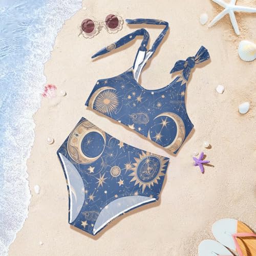 HOT ! Mandala Moon Sun Zodiac Girls' 2 Piecing Kids Bikini Set Beach Swimsuits Swimwear Adjustable Shoulder Strap