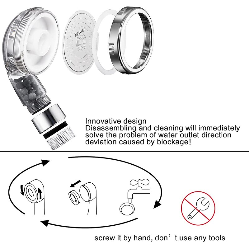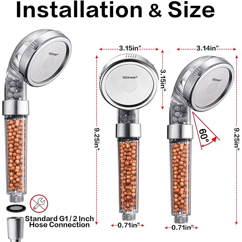 Stainless Steel Shower Head with handheld, Filter Filtration High Pressure Water Saving 3 Mode Function Spray Handheld Showerheads for Dry Skin & Hair 11