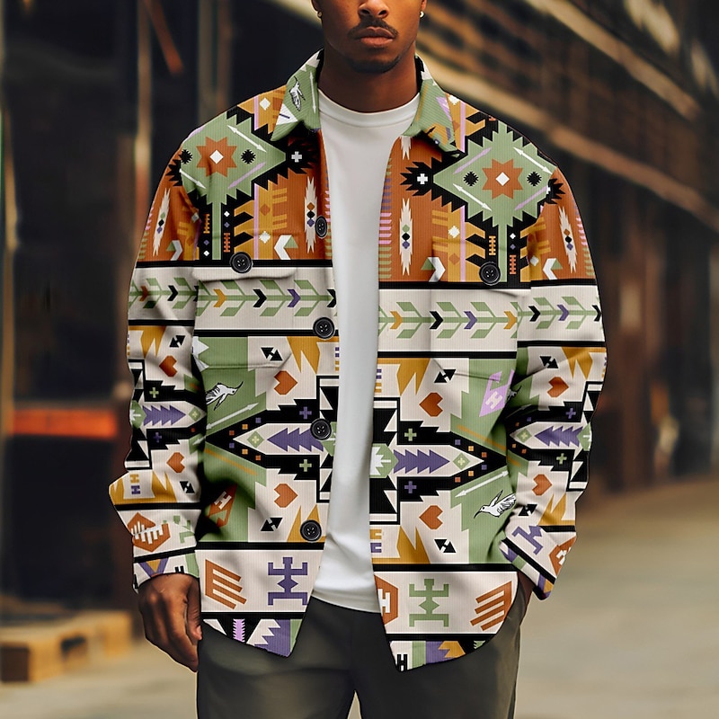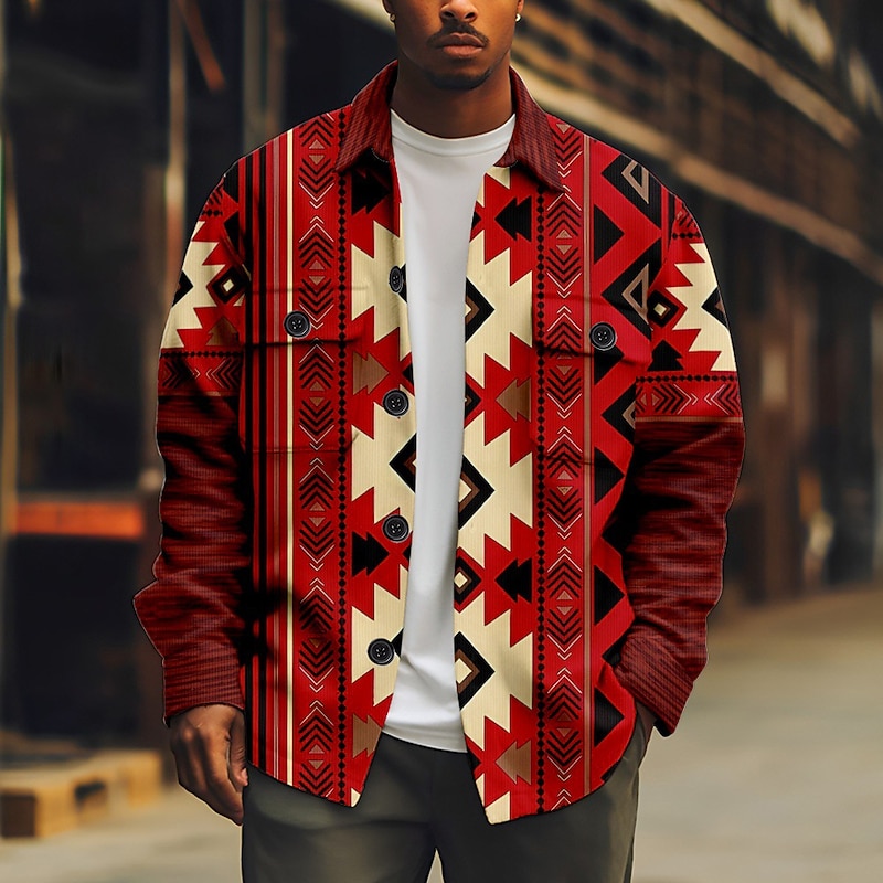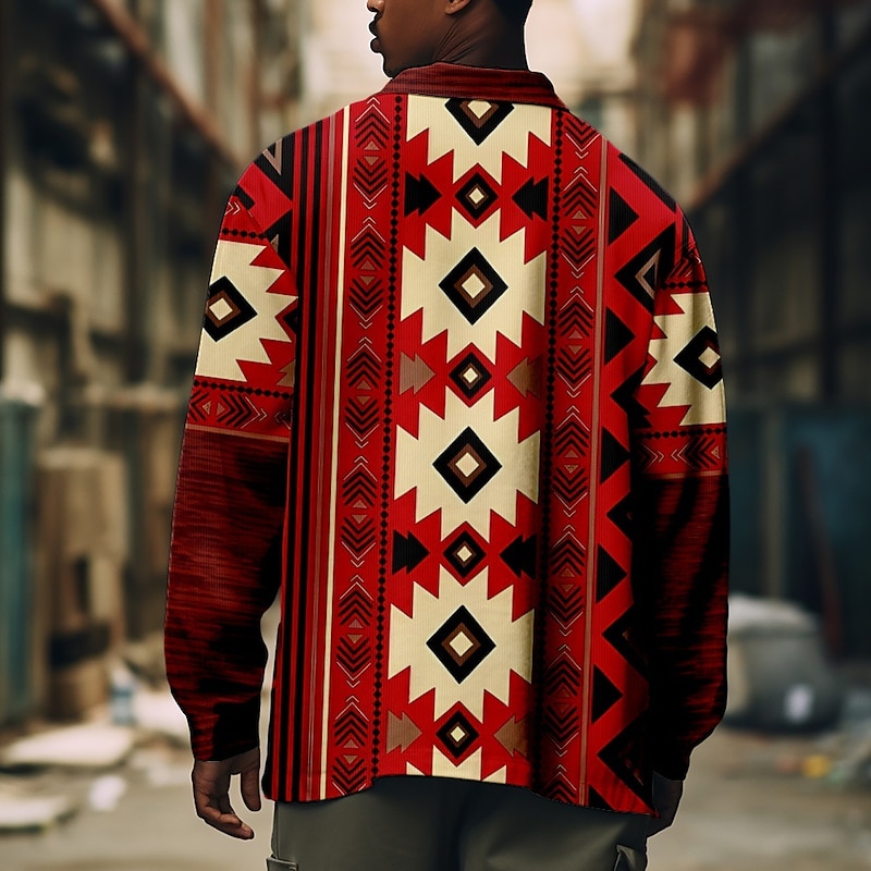 More information about Men's Bohemian Argyle Bandana Print Shirt Shirt Jacket Long Sleeve Vintage Outdoor Vacation Casual Daily Fall & Winter Lapel Buttons Pocket Print Red Brown Green Coffee
