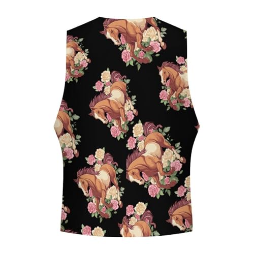 Running Horse Rose Men's Suit Vests Business Formal Dress Vest V-Neck Waistcoat for Wedding Casual 4