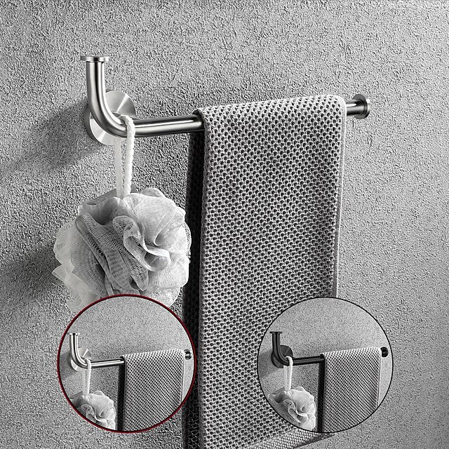 Multifunctional Towel Bar Brushed/Painted Finish Toilet Paper Holder with Coat Hook 304 Stainless Steel Mattle Black/Silver Wall-mounted 8