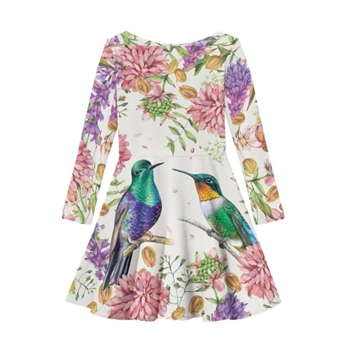 Thin Fall Dress for Girls Casual Cute Long Sleeve Swing Skater Dress Funny Print Party Outfits 4