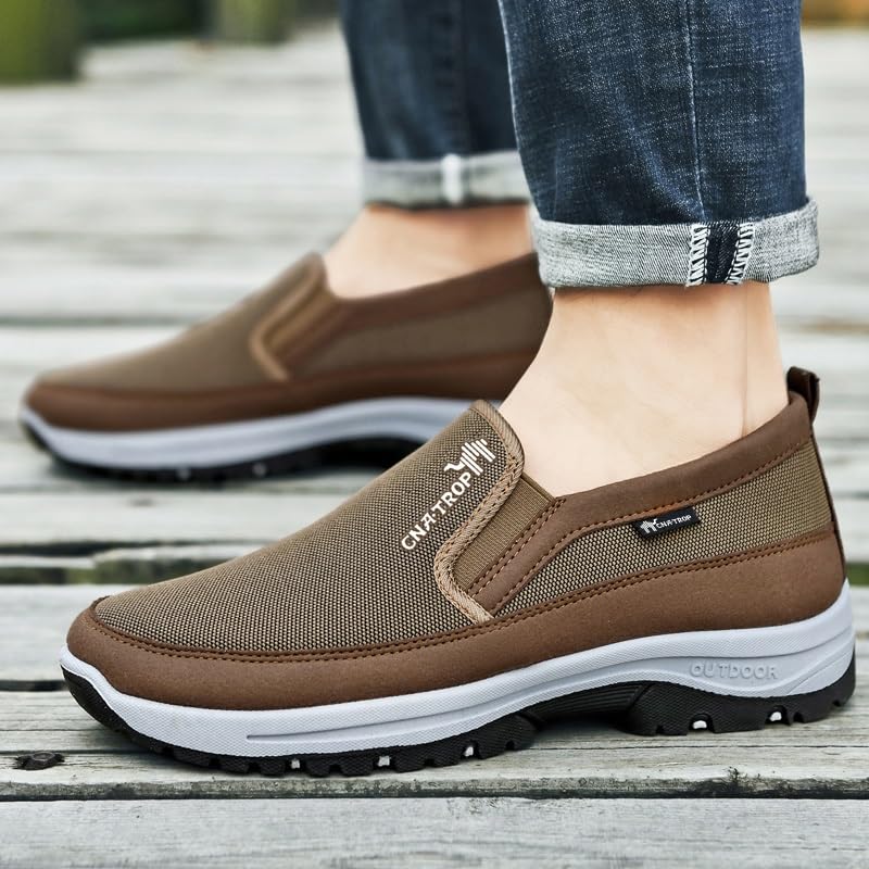 VOODUE Auguscare Shoes Men, Men's Arch Support Slip-On Canvas Loafers, Men Mesh Breathable Lightweight Non Slip Arch Support Sneakers Flats Walking Boat Shoes(Brown,US 10.5) 6