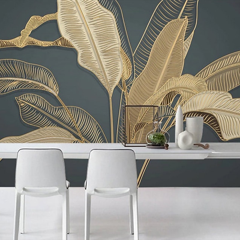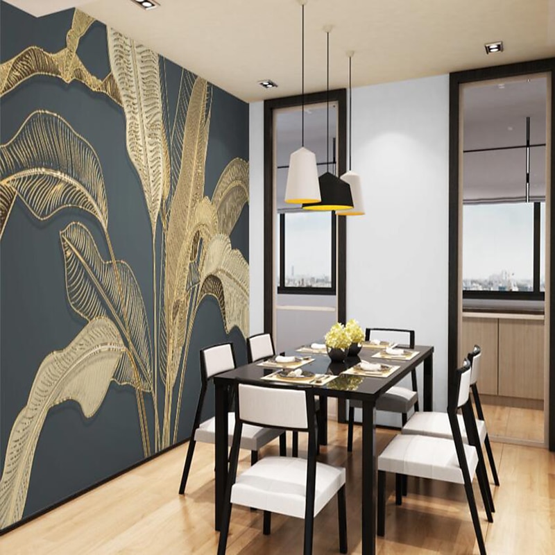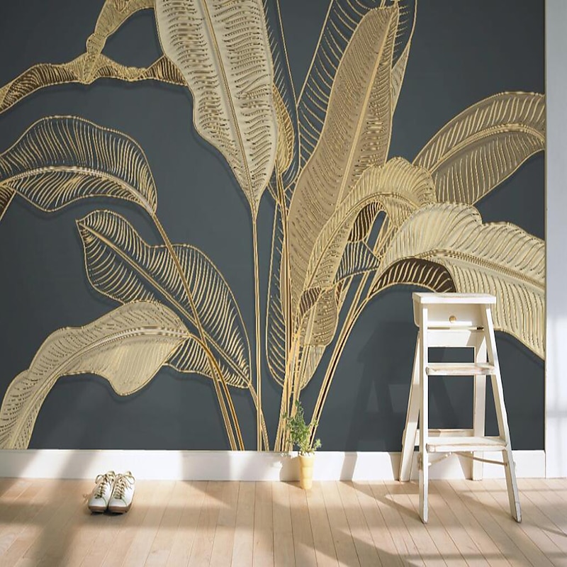 Mural Wallpaper Wall Sticker Covering Print Gold Tropical Palm Leaf Canvas Home Décor Peel and Stick Removable 3