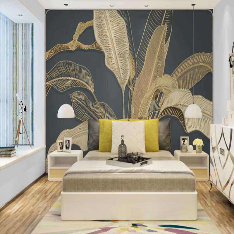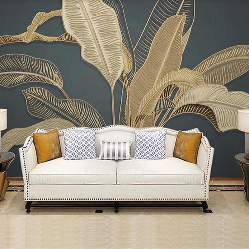 HOT ! Mural Wallpaper Wall Sticker Covering Print Gold Tropical Palm Leaf Canvas Home Décor Peel and Stick Removable