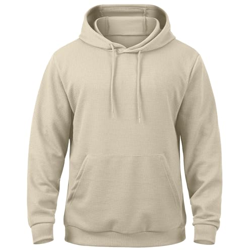 More information about Mens Hoodies Pullover Loose Fit Waffle Knit Sweatshirt Long Sleeve Casual Fashion Gym Hooded Shirt With Kanga Pockets