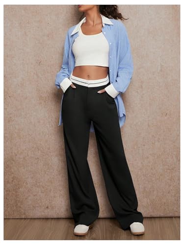 HOT ! Floerns Women's Straight Leg Dressy Pants Color Block Mid Rise Trousers with Pocket