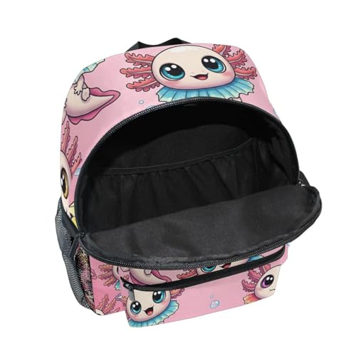 HOT ! Backpack for Toddler Boys Girls, Cute Cartoon Axolotls Pink Travel Bookbag with Name Tag Mini Kids School Bag, 3-8 Years