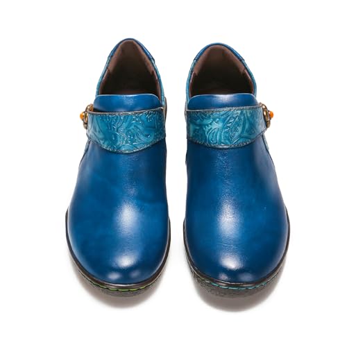 Superladystar's Women Comfy Cowhide Hand Made Flat Shoes, Coloring Painted, Hand Embossed, Retro Style, Walk Shoes 5