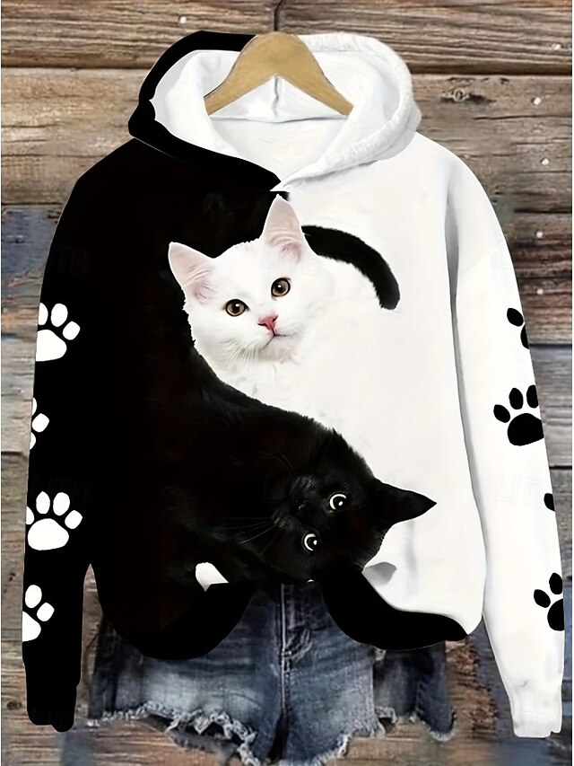 HOT ! Women's Hoodie Pullover Sweatshirt Oversized Long Sleeve Casual Graphic Animal Vintage Fashion Western Hooded Regular Tops Street Dailywear Holiday Print Front Pocket Black Beige Fall Winter
