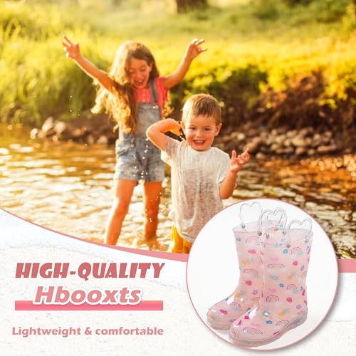 HOT ! Toddler Rain Boots Waterproof Rubber Kids Rain Boots for Girls and Boys with Fun Patterns and Easy-On Handles