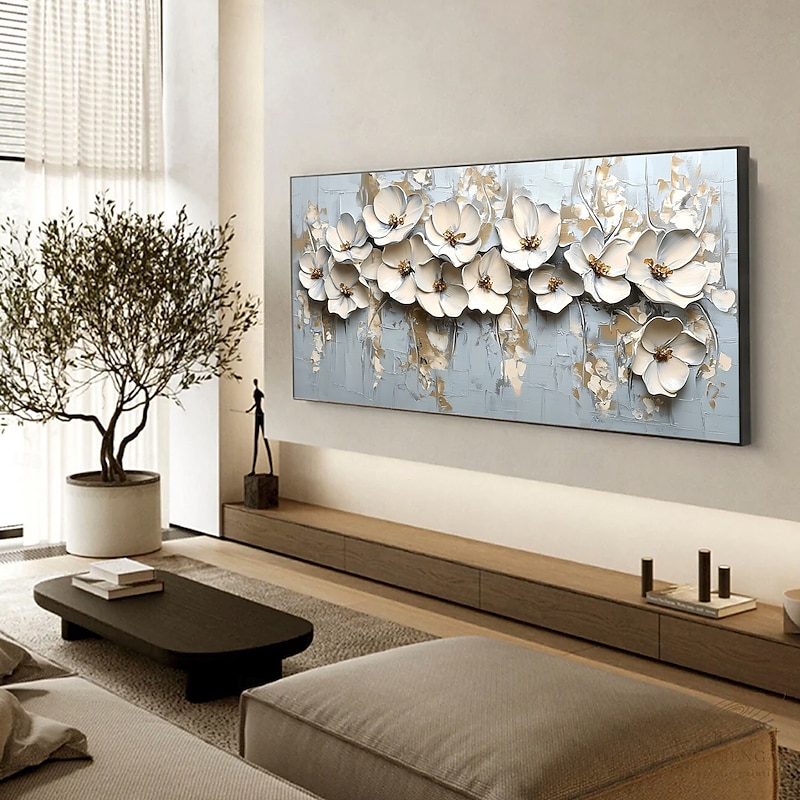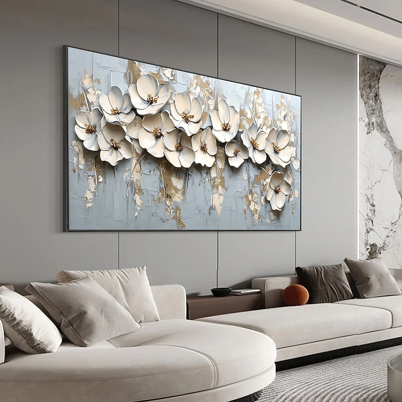$139.99 - Handmade Original 3D Texture Flowers Oil Painting On Canvas Abstract White Floral Wall Art for Home Decor With Stretched FrameWithout Inner Frame Painting 2025. Shop for cheap Floral/Botanical Paintings online? Buy at lightinthebox.com on sale today!