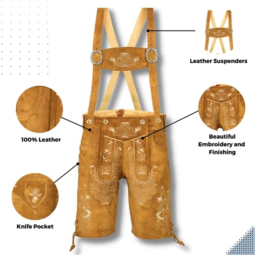 Lederhosen Men - Authentic German Bavarian Lederhosen - Men Oktoberfest Lederhosen (Style 1) 5