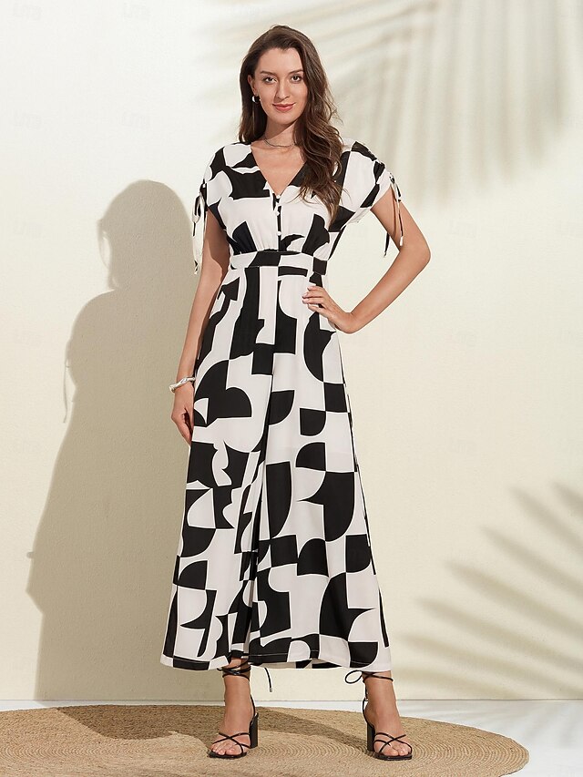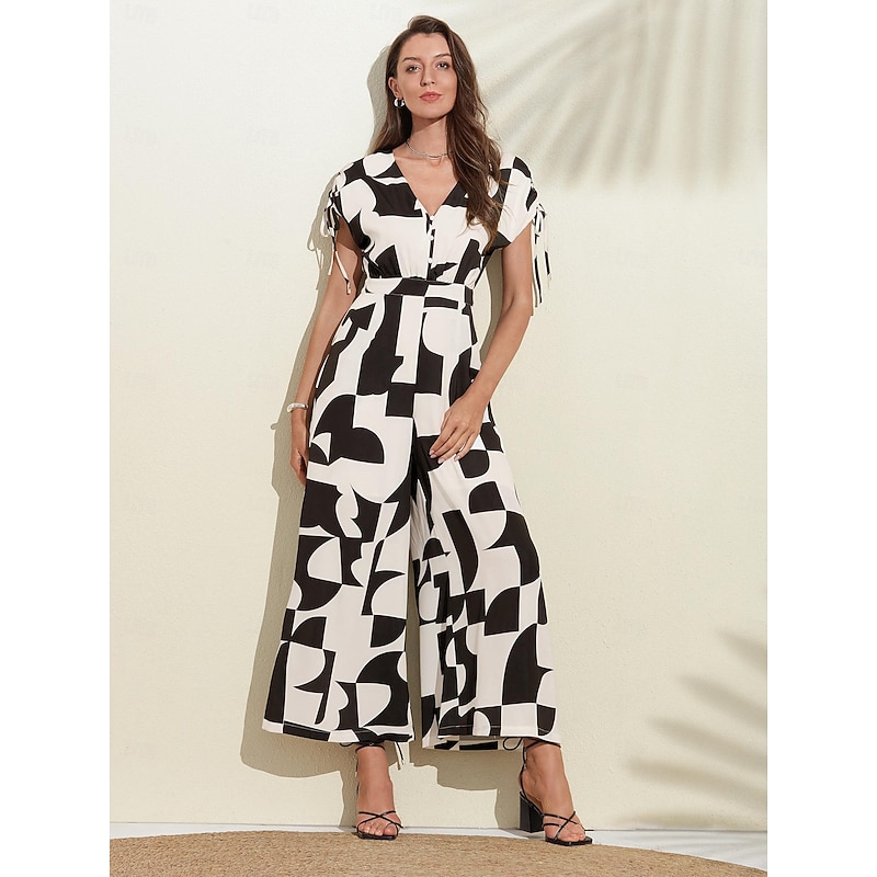 HOT ! Button Drawstring Geometric Jumpsuit