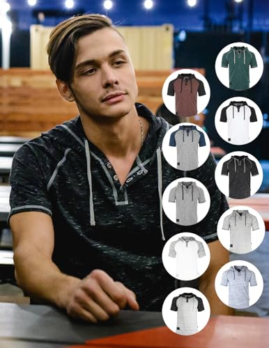 More information about ZIMEGO Men’s Color Block Short Sleeve Casual Fashion Hip Hop Hooded Henley Shirt