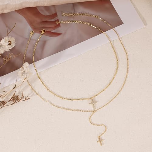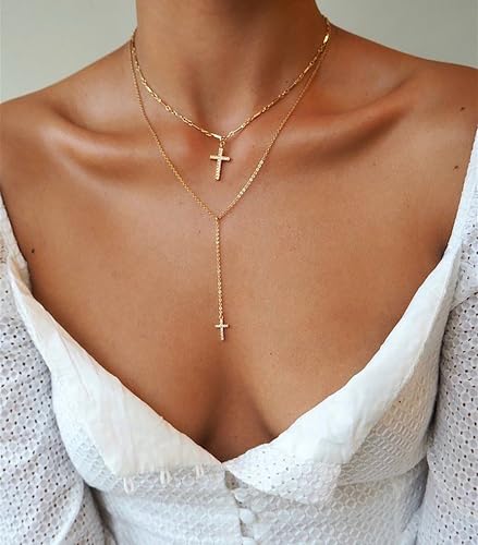 More information about Cross Necklace for Women, 14k Gold Plated Long Cross Pendant Necklace Stack Layered Gold Necklaces for Women Trendy Dainty Layering Cross Lariat Necklace Set Fashion Womens Jewelry