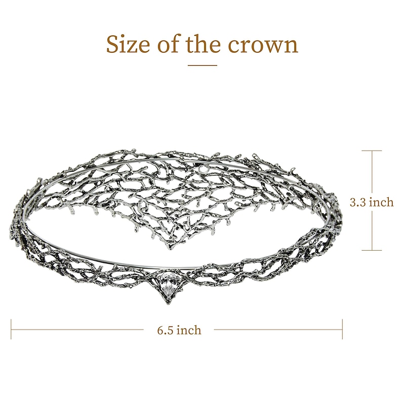 Highlights Size: Could not be adjustable, please confirm the size before buying! Approximately 6.7" in diameter, 21" in circumference. Material: This forehead crown is made of alloy and crystal rhinestones. Design: Witchy jewelry for women, forehead is dotted with one rhinestones, which is unparalleled in clarity and brings out dramatic on your important day! Occasions: This vintage tiara is perfect for birthday, wedding, quinceanera, pageant, prom, anniversary, theatre, photograph, retro themes party, cosplay on Halloween and some other special occasions. Wearing Method: There are two ways to wear, please refer to our images on the right.
