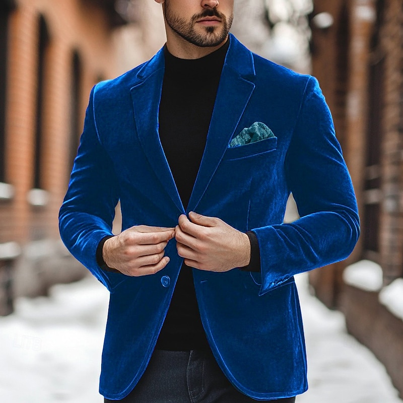 More information about Men's Blazer Jacket Casual Jacket Outdoor Casual Daily Pocket Christmas Warm Winter Spring & Fall Corduroy Solid Color Pocket Single Breasted One-button Blazer Red Blue Green