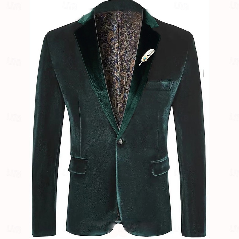 Men's Blazer Jacket Casual Jacket Outdoor Casual Daily Pocket Christmas Warm Winter Spring &  Fall Corduroy Solid Color Pocket Single Breasted One-button Blazer Red Blue Green 7