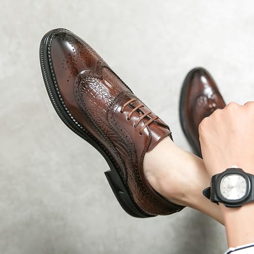 Men's Fashion Alligator Pattern Dress Oxfords Solid Color Low Top Pointed Toe Lace Up Non-Slip Business Casual Modern Derby Shoes for Wedding Office Formal Dress Shoes 6