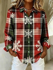 More information about Christmas Women's Shirt Blouse Graphic Geometric Plaid Vintage Classic Casual Long Sleeve Shirt Collar Regular Tops Daily Patchwork Buttons Print Yellow Red Green Summer Spring Fall Winter