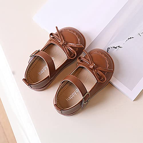 Fashion Four Seasons Children Casual Shoes Girls Leather Shoes Flat Bottom Round Toe Solid Color Bow Hook E Girl 5