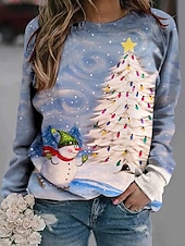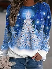 More information about Women's Pullover Sweatshirt Graphic Christmas Tree Fashion Casual Long Sleeve Crew Neck Regular Tops Street Dailywear Casual Print Red Blue Light Blue Spring Fall Winter