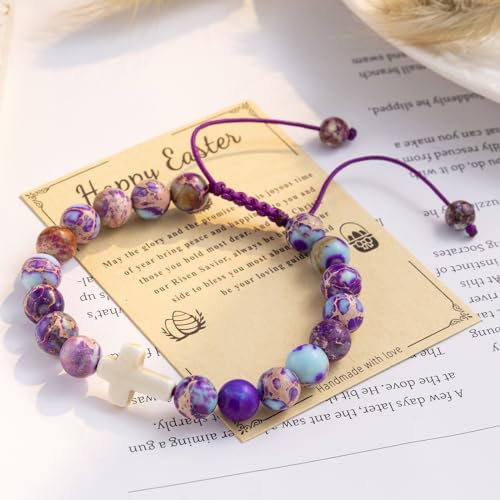 • 【 Material 】The Easter bracelet is made of 8mm high-quality natural stone beads, with exquisite cross charm, low allergenicity, lead-free, suitable for daily wear during Easter or other festivals.