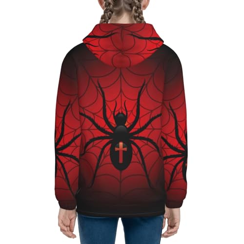 Spider on the Web Kids Pullover Hoodies Boys Zip Up Sweatshirts Girls Athletic Clothes with Pocket 4