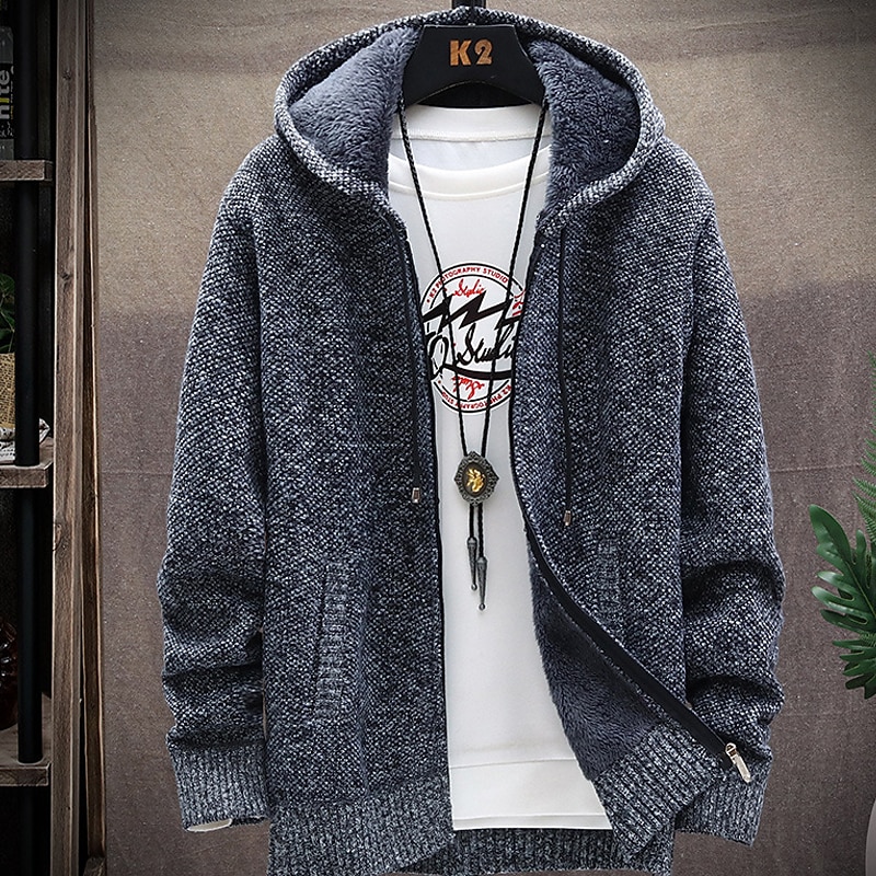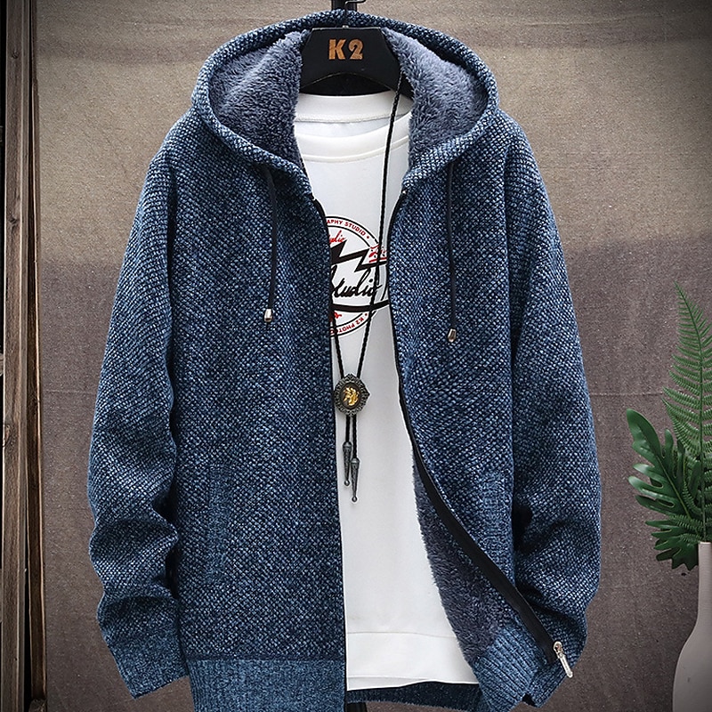 Men's Sweater Cardigan Knit Knitted Solid Color Hooded Stylish Outdoor Home Clothing Apparel Fall Winter Wine Blue S M L 11