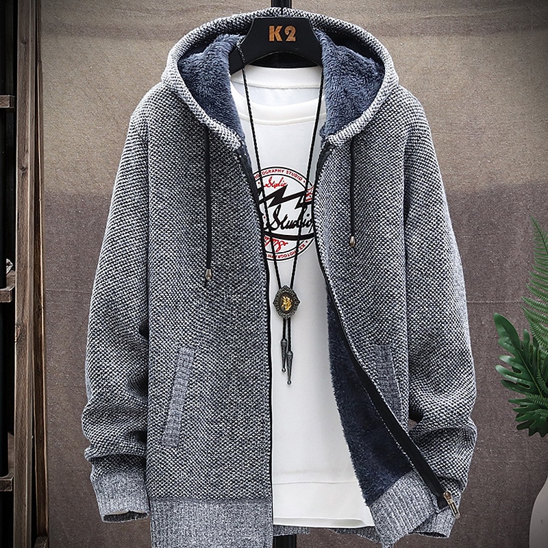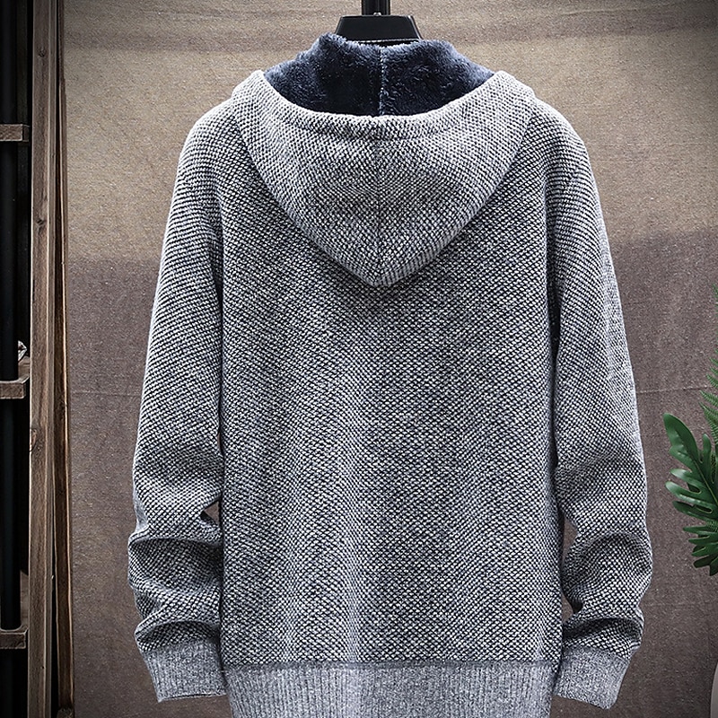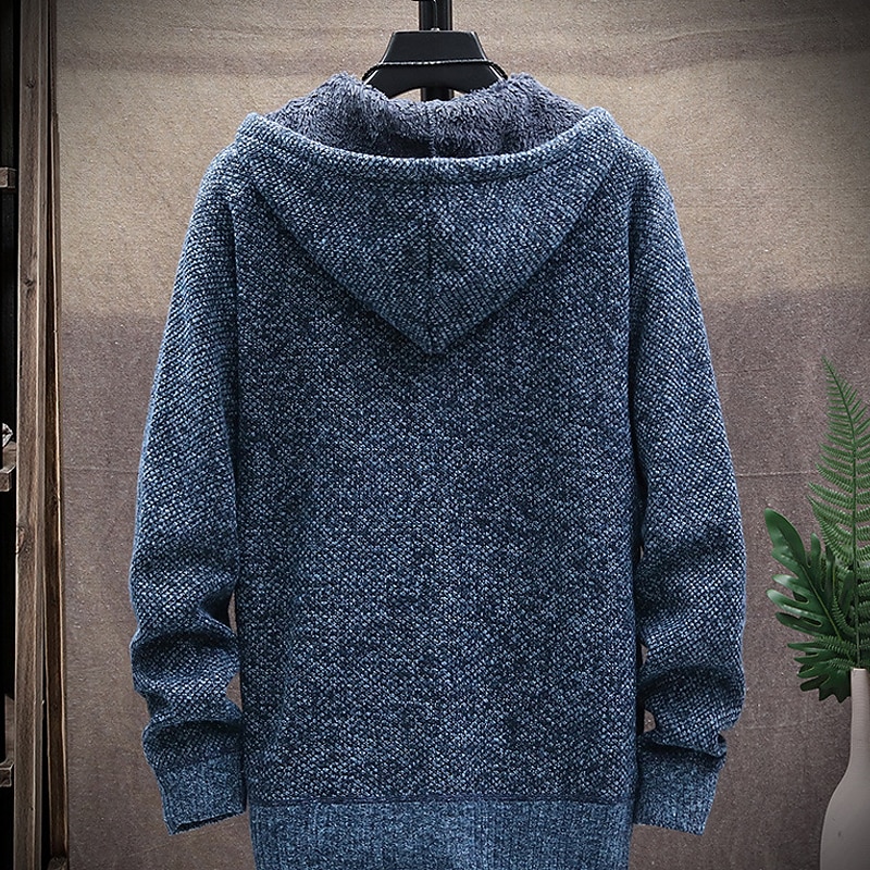 More information about Men's Sweater Cardigan Knit Knitted Solid Color Hooded Stylish Outdoor Home Clothing Apparel Fall Winter Wine Blue S M L