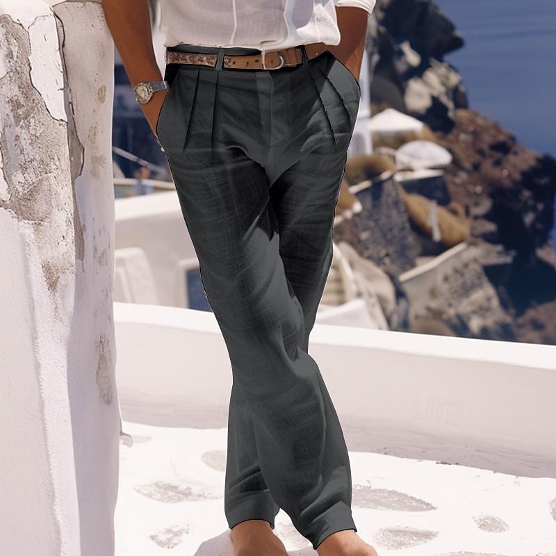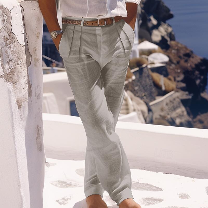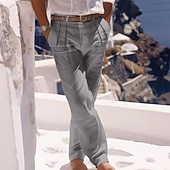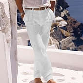 More information about Men's Linen Pants Trousers Summer Pants Beach Pants Buttons Pocket Pleats Plain Comfort Breathable Daily Holiday Vacation Hawaiian Boho White Khaki