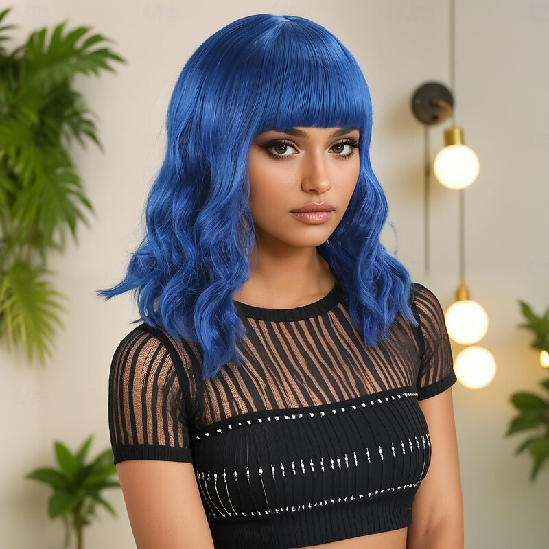 $24.99 - Women's Synthetic Wig Deep Wave Water Wave Asymmetrical Neat Bangs 16 Inch A1 Comfort Classic Machine Made Blue 2025. Shop for cheap Synthetic Trendy Wigs online? Buy at lightinthebox.com on sale today!