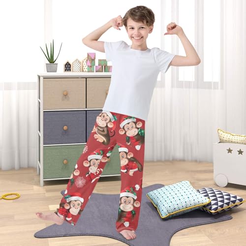 HOT ! ZZXXB Monkey Candy Cane Boys Long Pants Soft Trousers Elastic Waist Kids Lounge Bottoms with Pockets S-XL