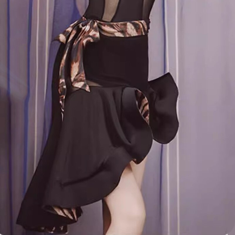 Latin Dance Skirts Ruffles Splicing Women's Performance Training Polyester Elastane 1