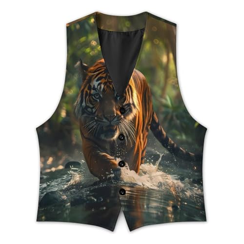 Green Forests Tiger Men's Suit Vest Waistcoat Vests Formal Dress with 2 Pockets for Business Casual Tuxedo 1