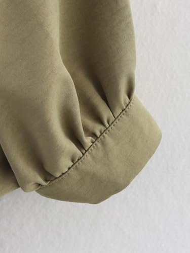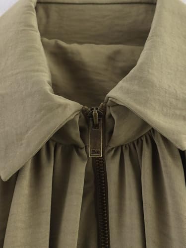 Womens Puffed Bomber Oversized Jacket Batwing Sleeve Streetwear Lapel Collar Zip Front Pleated Blouse Shirts 5