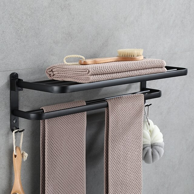 Aluminum Towel Rack for Bathroom,2-Layer Wall Mounted Towel Bar Towel Holder Bathroom Hardware Storage 5