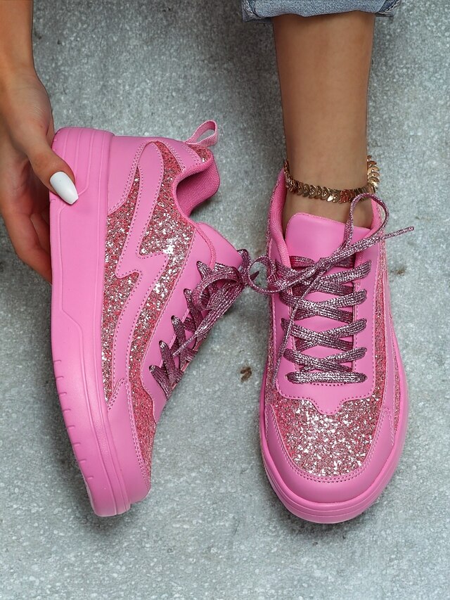 HOT ! Women's Comfortable Rose Pink Glitter Sneakers Perfect for Casual & Party Wear