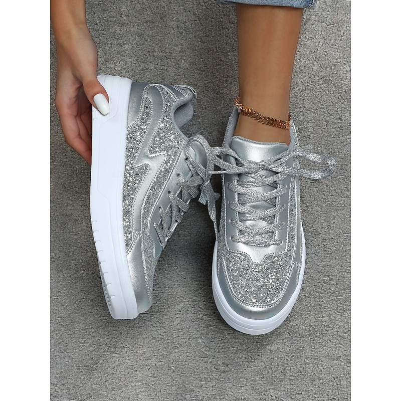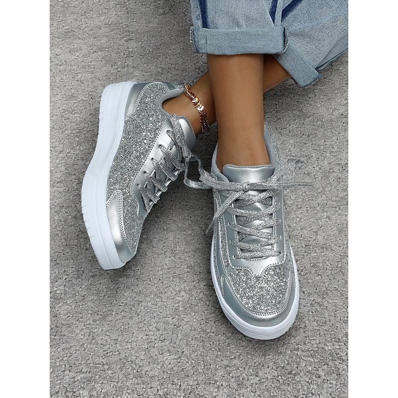 Highlights - Trendy faux leather upper material - Sparkling glitter for a touch of glamour - Comfortable round toe shape - Durable MD outsole for long-lasting wear - 2024 trend: Glitter crystal sequined jeweled design for added sparkle and sophistication