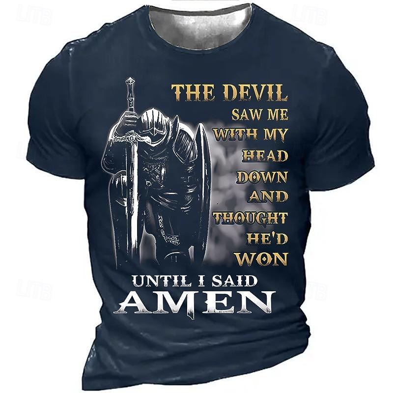 Men's Templar Cross Graphic Prints Soldier T Shirt Christian T Shirts Short Sleeve T shirt 3D Print Crew Neck Shirt Vintage Sports Designer Outdoor Street Daily Black / Gray Black+Black Black 1 Summer 18