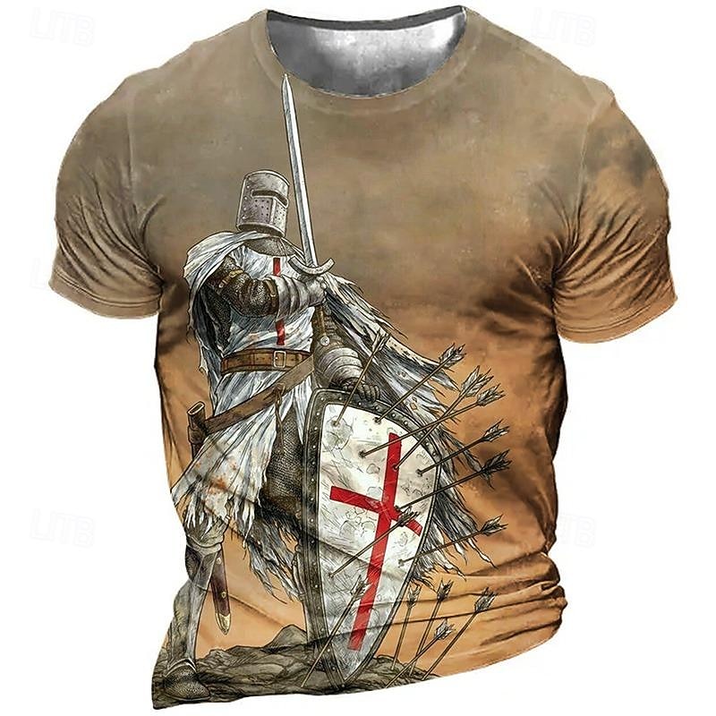 Men's Templar Cross Graphic Prints Soldier T Shirt Christian T Shirts Short Sleeve T shirt 3D Print Crew Neck Shirt Vintage Sports Designer Outdoor Street Daily Black / Gray Black+Black Black 1 Summer 15