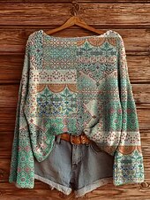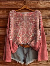More information about Women's Sweater Casual Soft Floral Vintage Ethnic Long Sleeve Crew Neck Regular Tops Daily Holiday Print Pink Red Green Spring Fall Winter