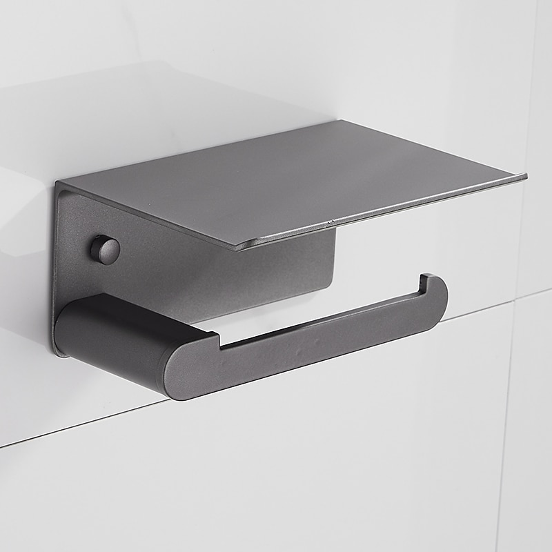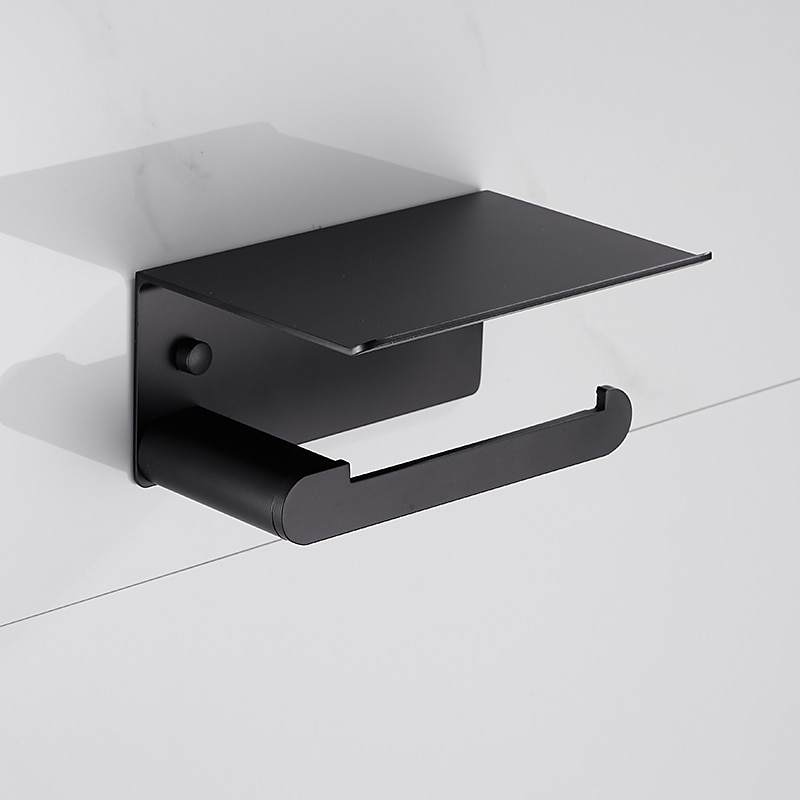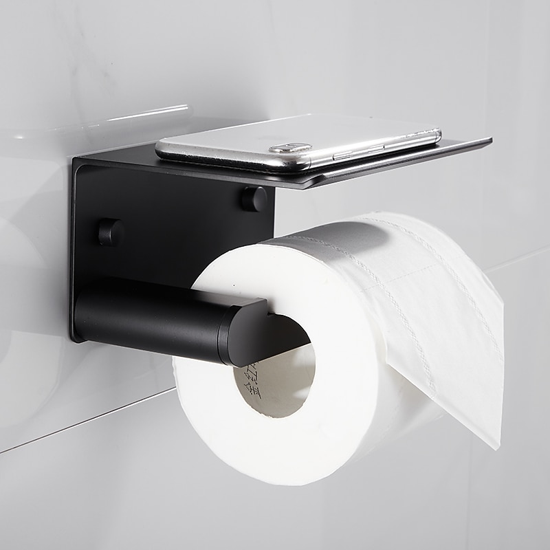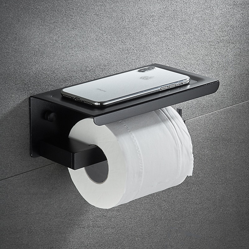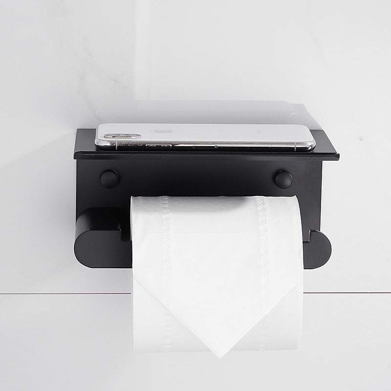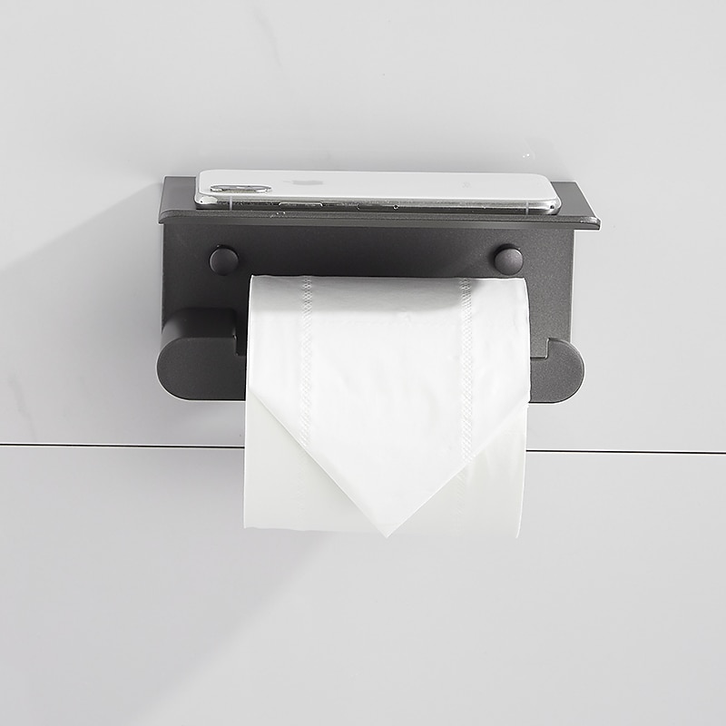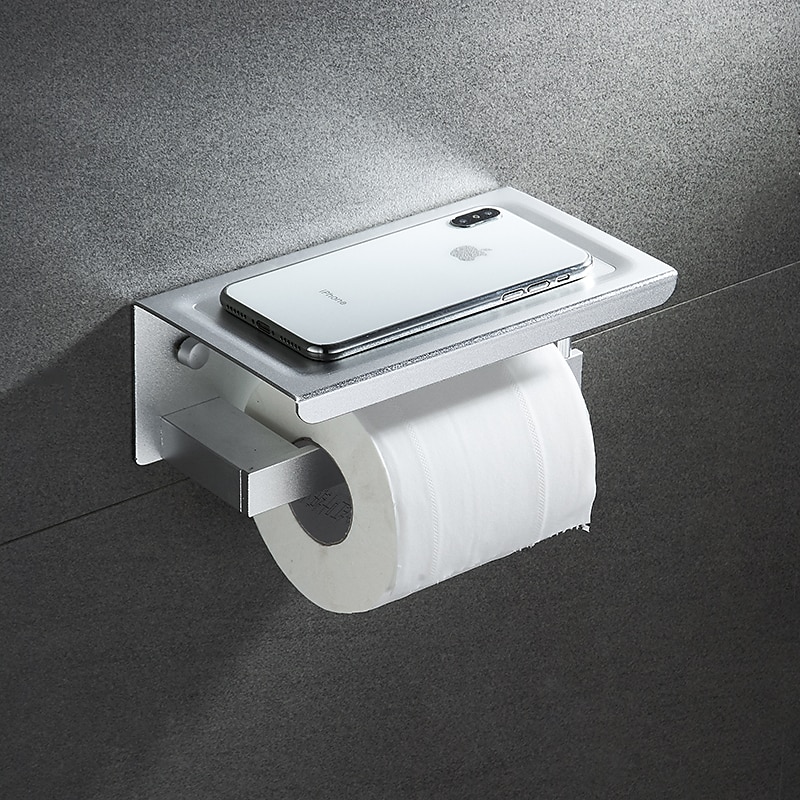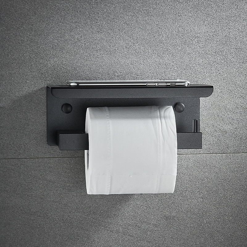 Toilet Paper Holder with Shelf Wall Mounted,Aluminum Toilet Paper Roll Holder, Tissue Roll with Mobile Phone Storage 7
