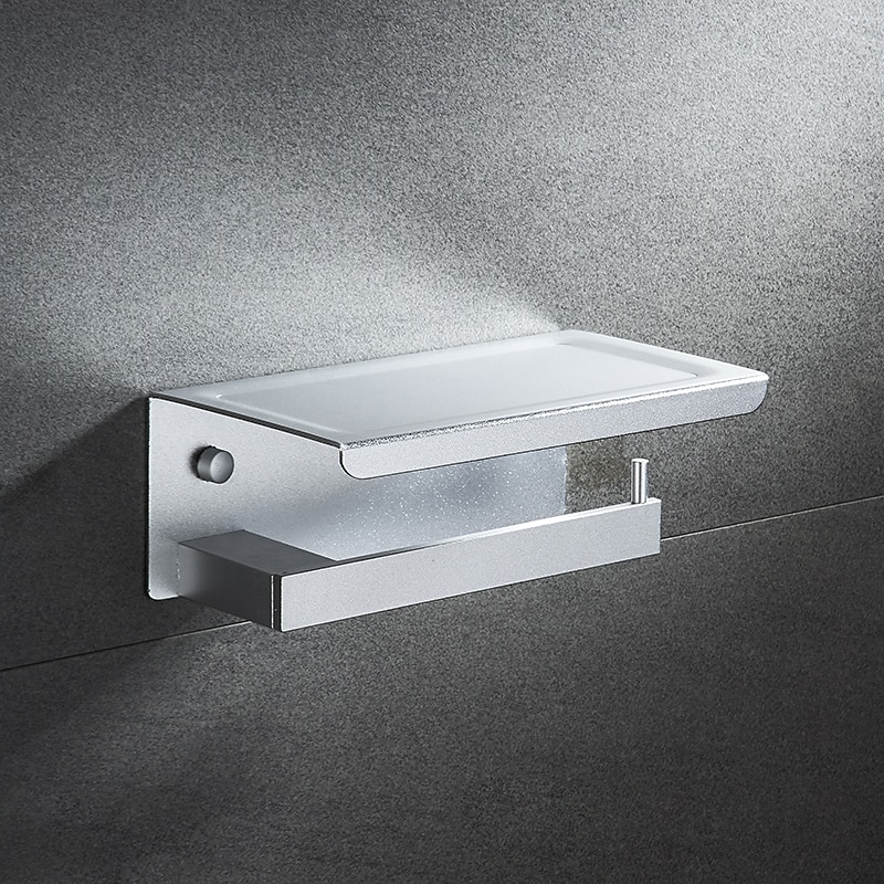 HOT ! Toilet Paper Holder with Shelf Wall Mounted,Aluminum Toilet Paper Roll Holder, Tissue Roll with Mobile Phone Storage