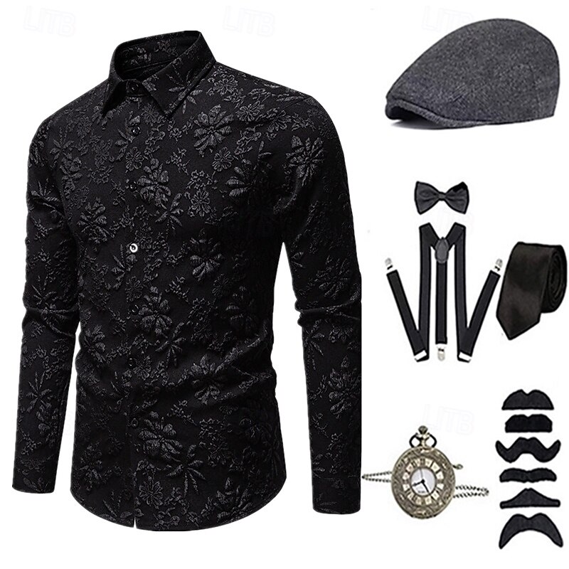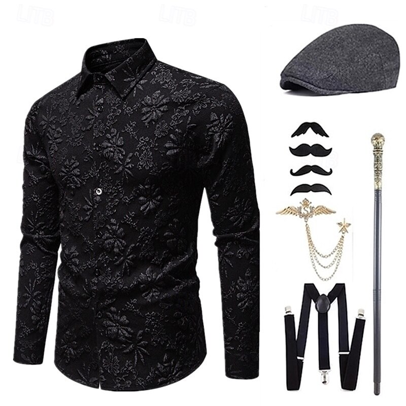 1920s Vintage Inspired The Great Gatsby Party Costume Accesories Set Turndown Fancy Dress Men's Halloween Party & Evening Casual Daily Adults' Blouse Hat All Seasons 11