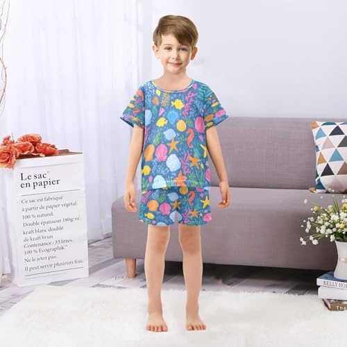 Why Choose Colorful Seashells Pattern Kids Pjs Set Boys Girls Summer Short-Sleeve Sleepwear Pajamas 2PCS?
